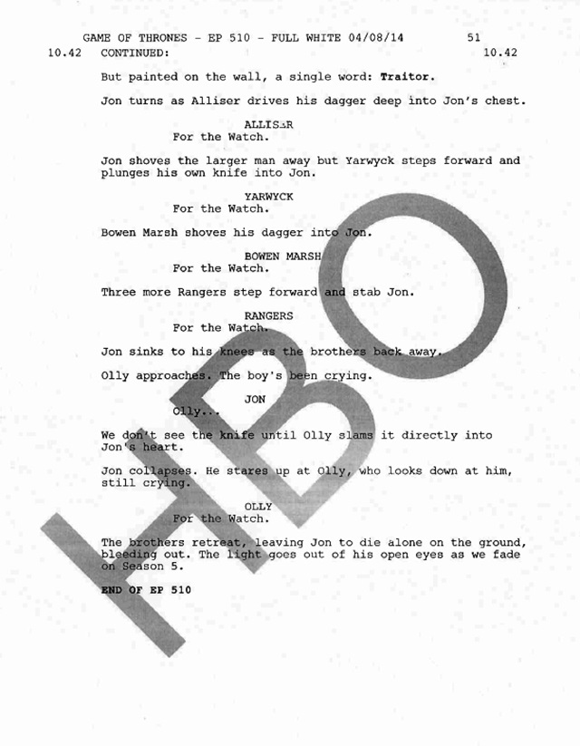 Jon Snow'un öldüğü sahnenin senaryosunu görmek ister misiniz? Jon Snow'un öldüğü sahnenin senaryosunu görmek ister misiniz? raninitv 17 Mart 2016
