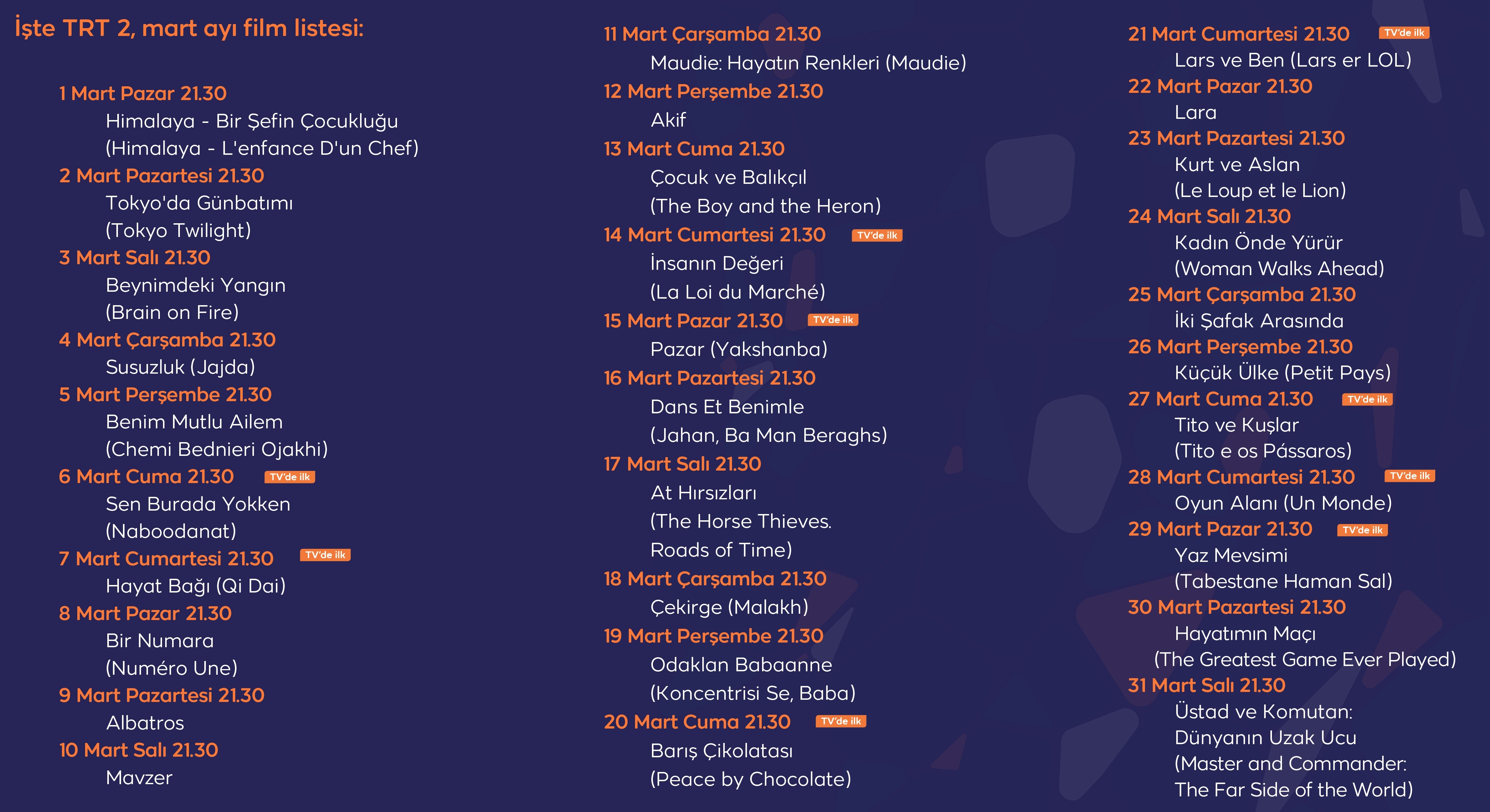 TRT 2, mart ayı