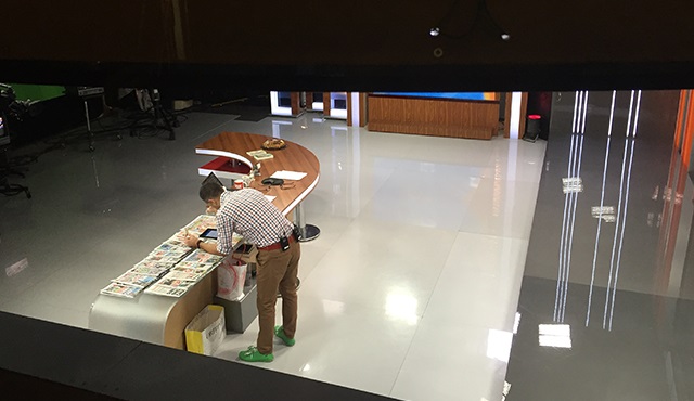 Yayını haber merkezinde izleyeceğim. Tam yayına 3-4 dakika kala Öznur'a telefon geliyor Murat Güloğlu'ndan. "Reji'den izlesin" diyor, benim için. Sevinerek Öznur ile birlikte stüdyonun hemen dibine konuçlanmış reji odasına gidiyorum. Odada yönetmen ve editör ile birlikte toplam 8 kişi var. Stüdyo aynı zamanda Ana Haber'in de yayınlandığı stüdyo. İçeride bir kamera, bir de jimmy jib var. Reji odası, Güloğlu yayındayken ekranın sağ üstünde görünen camlı alanda. Yayın yapılırken stüdyoyu tepeden izleyebiliyorsun aynı zamanda da..