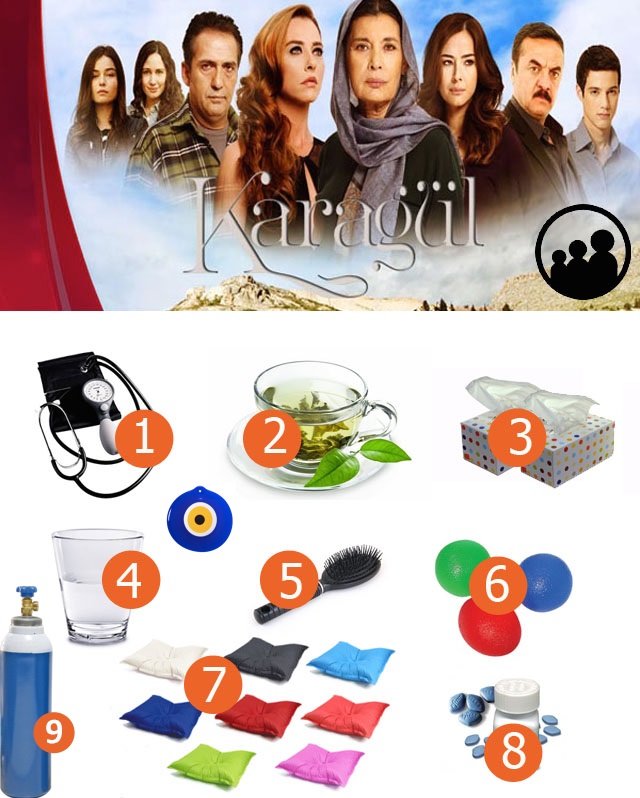 1. Dizide tansiyon sürekli yüksek, biz kendimizinkini kontrol edelim. 2. Melisa çayı eşliğinde izleyin, sakinleştirici etkisi var. 3. Murat öldüğünde çok ağladık, tedbir olsun. 4. Bir bardak su seni kendine getirir. Bu arada sular Ranini'den! 5. Diziyi izlerken sinirden saçını yolanlar varmış. Her koşulda düzenli ve bakımlı olmak şart. Tarayalım o saçları.. 6. Aman diyeyim, stres topunu elinizden düşürmeyin. 7. Sinirlendiğinizde televizyona illa bir şeyler fırlatacaksanız şu yastıkları fırlatın da kırmayın televizyonunuzu. 8. Ve