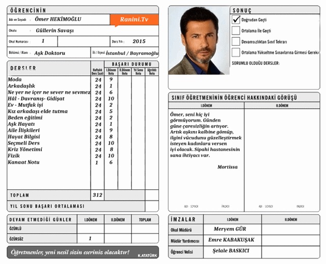 İşte Ömer'in karnesi;
